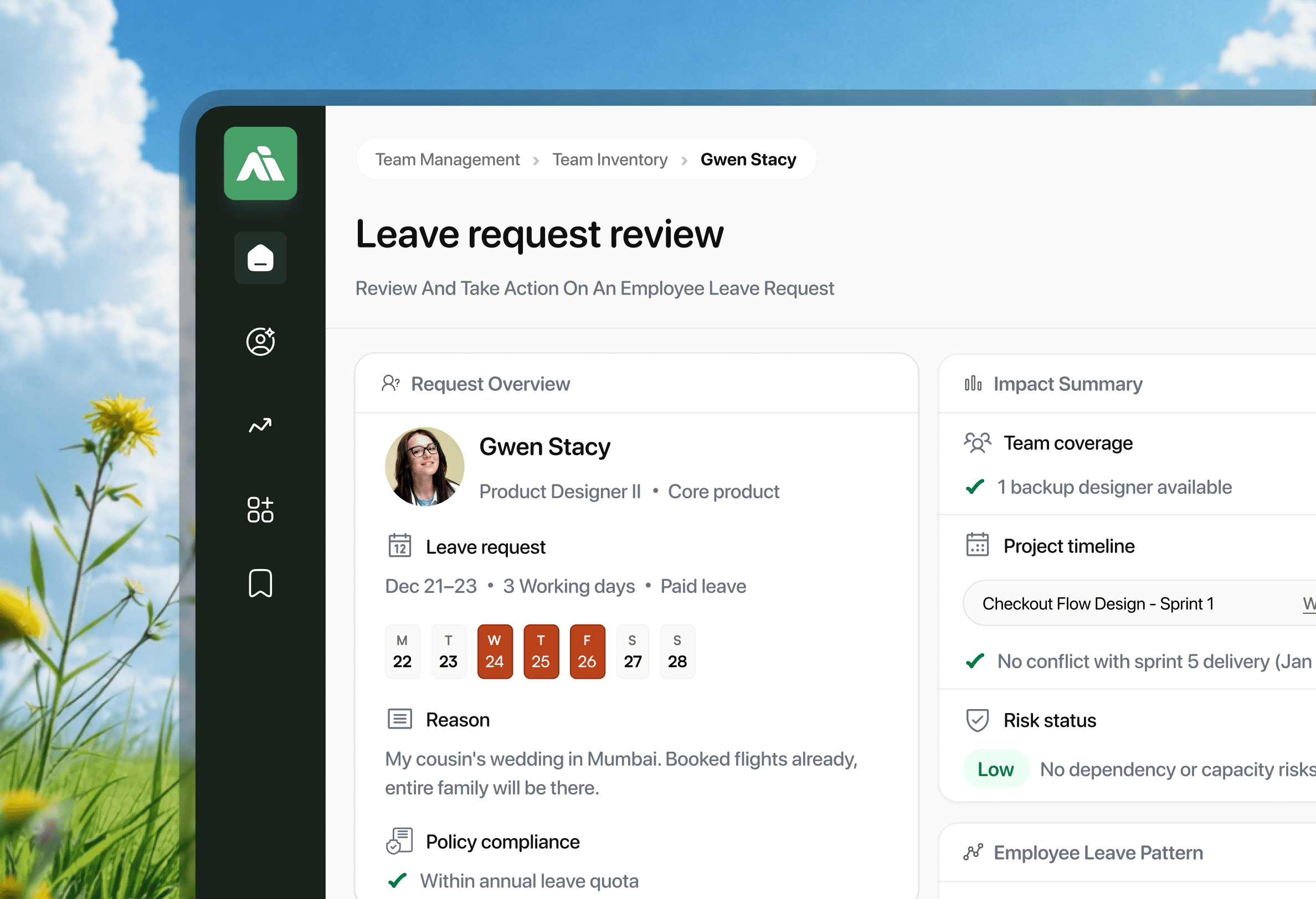 Helping managers approve leave with confidence by unifying team availability, sprint impact, and policy signals into a single decision screen